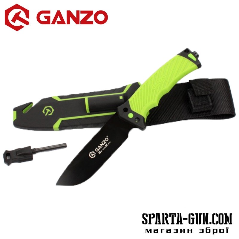 У комплекті з ножем Ganzo G803 також надаються багатофункціональні пластикові піхви, оснащені інтегрованим Стропорез і точила, а також володіють знімним кресалом.