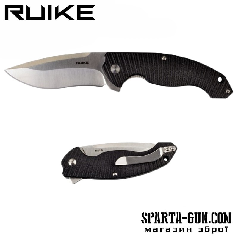 Модель Ruike P852-B позиціонується виробником як універсальний «складник», який підійде для експлуатації в будь-яких умовах. Варто відзначити, що завдяки застосуванню першокласних матеріалів і продуманості конструкції, цей ніж дійсно зберігає працездатність при сильних забрудненнях, інтенсивних навантаженнях, температурних перепадах і під впливом вологи.