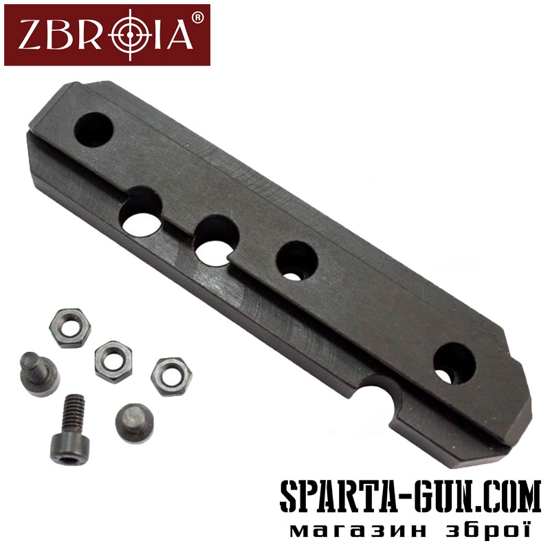 Дана бічна планка компанії ZBROIA (ЗБРОЯ) може бути встановлена ​​на мисливську зброю, виконане на базі Автомату Калашникова (АК), карабінів Вепр, карабінів типу Сайга 12, Сайга 20, Сайга 410 автоматного типу, Сайга МК, Сайга 308, Форт 202, Форт 205. Планка виконана з алюмінію і монтується на бічну сторону зброї, використовується для кріплення і установки кранштейн.