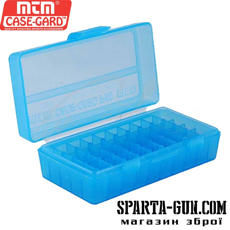 Коробка для патронів MTM кал. 9мм; 380 ACP. Кількість - 50 шт. Колір блакитнийДодаткова інформація