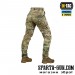 Зручні широкі кишені з посиленими вставками з Cordura (R) вмістять необхідний мінімум речей. Конструктивною особливістю штанів є еластичний «тунельний» пояс, за допомогою якого штани регулюються по об’єму талії. Спереду нижче пояса є два D-кільця для кріплення додаткового спорядження. Низ штанин регулюється по ширині за допомогою еластичного шнура та велкро клапана. Прихований внутрішній відсік для наколінників дає можливість встановлення додаткового захисту.