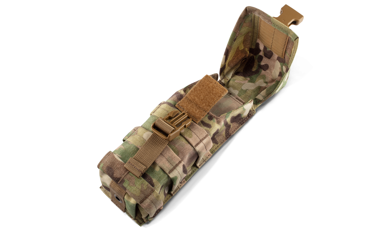 Підсумок U-WIN PRO розроблений під 2 магазини AR.Підсумок виконаний з двошарової оригінальної тканини Cordura що додає міцності і жорсткості конструкції.Відсутні внутрішні шви, які можуть пошкодитися при тривалому використанні.Герметичний клапан на фастексі і липучці Velcro надійно фіксує магазини і захищає від опадів і бруду.При вийманні першого магазину клапан підсумку може швидко закриватися на липучку для оперативного доступу до другого магазину.Один магазин, закритий кришкою на липучці — надійно утримується в підсумку при динамічному навантаженні.Підсумок має Молле-інтерфейс для розміщення додаткового спорядження.Нижня частина підсумку захищена поліамідною стропою з люверсним отвором.Підсумок надійно фіксується на дві Молле-стропи.Матеріали:- Оригінальна Cordura 1000D (Brookwood,