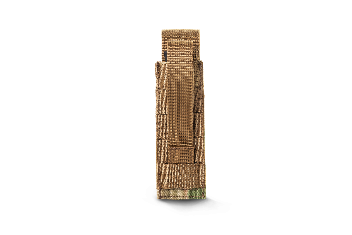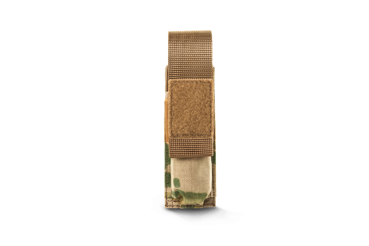 Підсумок розроблений під пістолетні магазини Форт і Глок (17 і 19), а також мультитул розміром до 16х4х2 см.Основа підсумку посилена пластиком для жорсткості.Основна кишеня виконана з подвійної тканини.Клапан підсумку кріпиться на велкро всередині підсумку для забезпечення регуляції по висоті. Клапан закривається на велкро.По боках підсумку передбачені еластичні резинки для утримання магазинів чи мультитулу.Знизу передбачений люверсний отвір для відтоку бруду чи вологи.Підсумок фіксується до Молле-інтерфейсу на 1 стропу Молле.Матеріали:- Оригінальна Cordura 1000D (Brookwood, США). Тканина має NIR-просочення (не світиться в приладі нічного бачення – відео з тестом, подвійне поліуретанове просочення для відштовхування води , не підтримує горіння, не вигорає на сонці, не витирається. Завдяки запатентованому волокну Invista – має підвищену міцність і зносостійкість, а також зберігає свої властивості тривалий час в екстремальних умовах експлуатації. Відео з порівнянням оригінальної Cordura з підробкою.- Армовані нитки TYTAN з 100% суцільного поліефірного шовку. Відрізняються високою міцністю на розрив і стійкістю до хімічних і механічних чинників. Відео з порівнянням ниток і швів.- Липучка Velcro Alfatex (Бельгія). Має щільний шар гачків і петель, які зберігають властивості протягом тривалої експлуатації в екстремальних умовах.- Поліамідні стропи. Мають високу міцність, зносостійкість і високу температуру плавлення.Вага: 48 г.Розміри: 16х5х3 см.