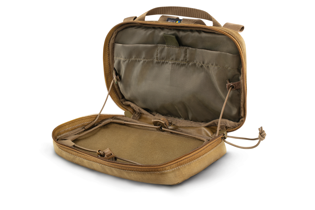 Підсумок розроблений під планшет з діагоналлю 7-8 дюймів. Підходить під планшети в широкому діапазоні розмірів за рахунок можливості регулювання кріплення шок-кордом.Максимальний розмір планшету, який вміщається в підсумок: 22х13 см.В комплекті:1. Підсумок під планшет 2. Пасок для кріплення через спину. Надає можливість зручно використовувати підсумок з планшетом у відкритому вигляді, а також активно рухатися із закритим підсумком.3. Пасок для кріплення на шиї чи перенесення на плечі. Всі паски можна від'єднати за потреби.Для переносу підсумку в руці передбачена коротка ручка зверху.Ззовні підсумок має посилений Молле-інтерфейс з основної тканини і велкро-панель для патчів і ідентифікаторів.На задній стінці — Молле-інтерфейс на 4 стропи для кріплення на плитоносці.Підсумок застібається на якісну блискавку з двома бігунками. Обидві стінки підсумку мають демпферні подушки для захисту планшету.Стінка, до якої кріпиться планшет, посилена пластиком.Всередині має містку кишеню на липучці для чохла, блокноту чи дрібниць.Кут нахилу кришки з планшетом регулюється в широкому діапазоні за допомогою паракорду з фіксатором.Матеріали:- Оригінальна Cordura 500D (Weber,