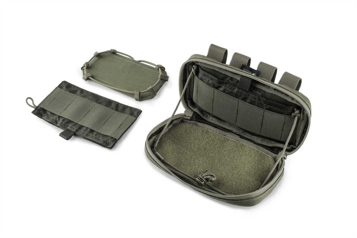 Підсумок підходить під найбільші телефони-цеглини розміром до 177х87х25 мм.Всередині має зйомну панель на липучці під телефон, а також додаткову панель-органайзер, яку можна встановити замість панелі під телефон.Окрім зйомних панелей підсумок всередині має кишеню під документи на липучці, а також резинки-органайзери для дрібничок і окрему резинку для горизонтальної фіксації олівця.Кут нахилу розкритого підсумку легко регулюється.Ззовні підсумок під телефон оснащений трьома резинками під активоване хімічне світло, або маркери.Зовнішня велкро-панель дозволяє розмістити патчі і ідентифікатори.Підсумок закривається на блискавку з двома бігунками і надійно кріпиться до Молле-інтерфейсу на 4 стропи.Знизу у задній стінці має кишеню з кавером-дощовиком на резинці з просоченням проти вологи.Кавер зафіксований до підсумку і за потреби може бути використаний як додатковий захист від бруду та вологи.Матеріали:- Оригінальна Cordura 500D (Weber, Німеччина). Тканина має NIR-просочення (не світиться в приладі нічного бачення – відео з тестом, подвійне поліуретанове просочення для відштовхування води , не підтримує горіння, не вигорає на сонці, не витирається. Завдяки запатентованому волокну Invista – має підвищену міцність і зносостійкість, а також зберігає свої властивості тривалий час в екстремальних умовах експлуатації. Відео з порівнянням оригінальної Cordura з підробкою.- Армовані нитки TYTAN з 100% суцільного поліефірного шовку. Відрізняються високою міцністю на розрив і стійкістю до хімічних і механічних чинників. Відео з порівнянням ниток і швів.- Якісні резинки, шок-корд і паракорд з поліаміду найвищої міцності і зносостійкості.- Липучка Velcro Alfatex (Бельгія). Має щільний шар гачків і петель, які зберігають властивості протягом тривалої експлуатації в екстремальних умовах.- Поліамідні стропи. Мають високу міцність, зносостійкість і високу температуру плавлення.Зовнішні розміри підсумку: 18,5х11х4,0 смВага: 226 г.