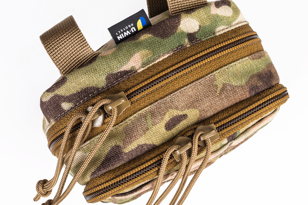 Підсумок розрахований для зберігання предметів розмірами до 14х14х7 см, які не бажано пошкодити звичайними умовами зберігання: далекомір (наприклад такий), тактичні навушники тощо.Підсумок складається з двох відділів:1. Основний відділ шириною 7 см. — відділ закривається на якісну блискавку з двома бігунцями, захищений з усіх сторін м'яким демпферним матеріалом для захисту вмісту. Всередині має люверс і резинку-органайзер для дрібничок.2. Зовнішня кишеня на блискавці шириною 2 см — закривається на якісну блискавку з двома бігунцями, оснащена резинкою-органайзером для дрібничок.Підсумок кріпиться на дві стропи Молле і займає три вертикальних ряди Молле-інтерфейсу.На фронтальній панелі підсумок також має Молле-інтерфейс для розміщення додаткового спорядження.Матеріали:- Оригінальна Cordura 1000D (Brookwood,
