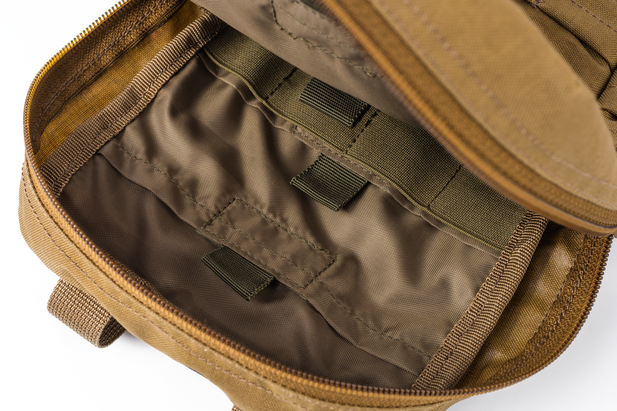 - Утилітарний вертикальний підсумок сухарка є універсальним для розміщення всього необхідного- Конструктив підсумку виконаний таким чином, що при відкритті підсумку його вміст не розсиплеться- Підсумок закривається на блискавку з двома бігунцями- Всередині має бокові кишені з органайзерами- Підсумок оснащений люверсом для відводу бруду і вологи- Кріпиться на дві стропи Молле на РПС, плитоноску або наплічник- Займає 4 вертикальних ряди Молле і може бути розташований симетрично по центру плитоноски- Оснащений зовнішнім Молле-інтерфейсом- Має Велкро-панель для патчів і ідентифікаторівМатеріали:- Оригінальна Cordura 500D (Weber, Німеччина). Тканина має NIR-просочення (не світиться в приладі нічного бачення – відео з тестом, подвійне поліуретанове просочення для відштовхування води , не підтримує горіння, не вигорає на сонці, не витирається. Завдяки запатентованому волокну Invista – має підвищену міцність і зносостійкість, а також зберігає свої властивості тривалий час в екстремальних умовах експлуатації. Відео з порівнянням оригінальної Cordura з підробкою.- Армовані нитки TYTAN з 100% суцільного поліефірного шовку. Відрізняються високою міцністю на розрив і стійкістю до хімічних і механічних чинників. Відео з порівнянням ниток і швів.- Якісні резинки і паракорд з поліаміду найвищої міцності і зносостійкості.- Липучка Velcro Alfatex (Бельгія). Має щільний шар гачків і петель, які зберігають властивості протягом тривалої експлуатації в екстремальних умовах.- Поліамідні стропи. Мають високу міцність, зносостійкість і високу температуру плавлення.Зовнішні розміри: 25х15х8 см.Вага: 450 г.