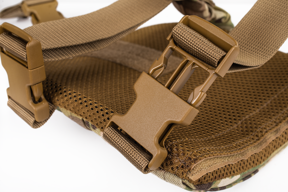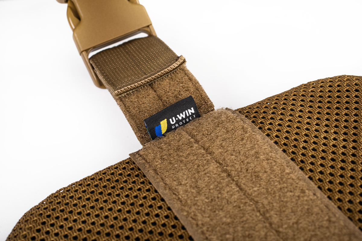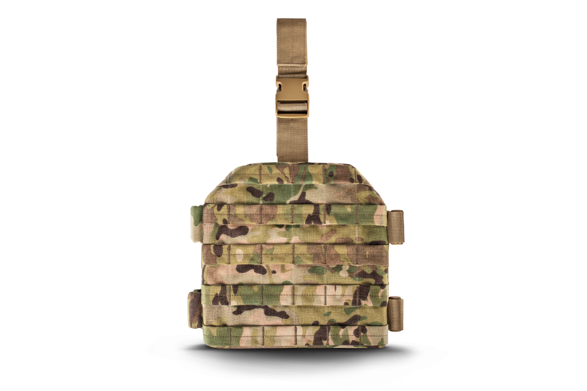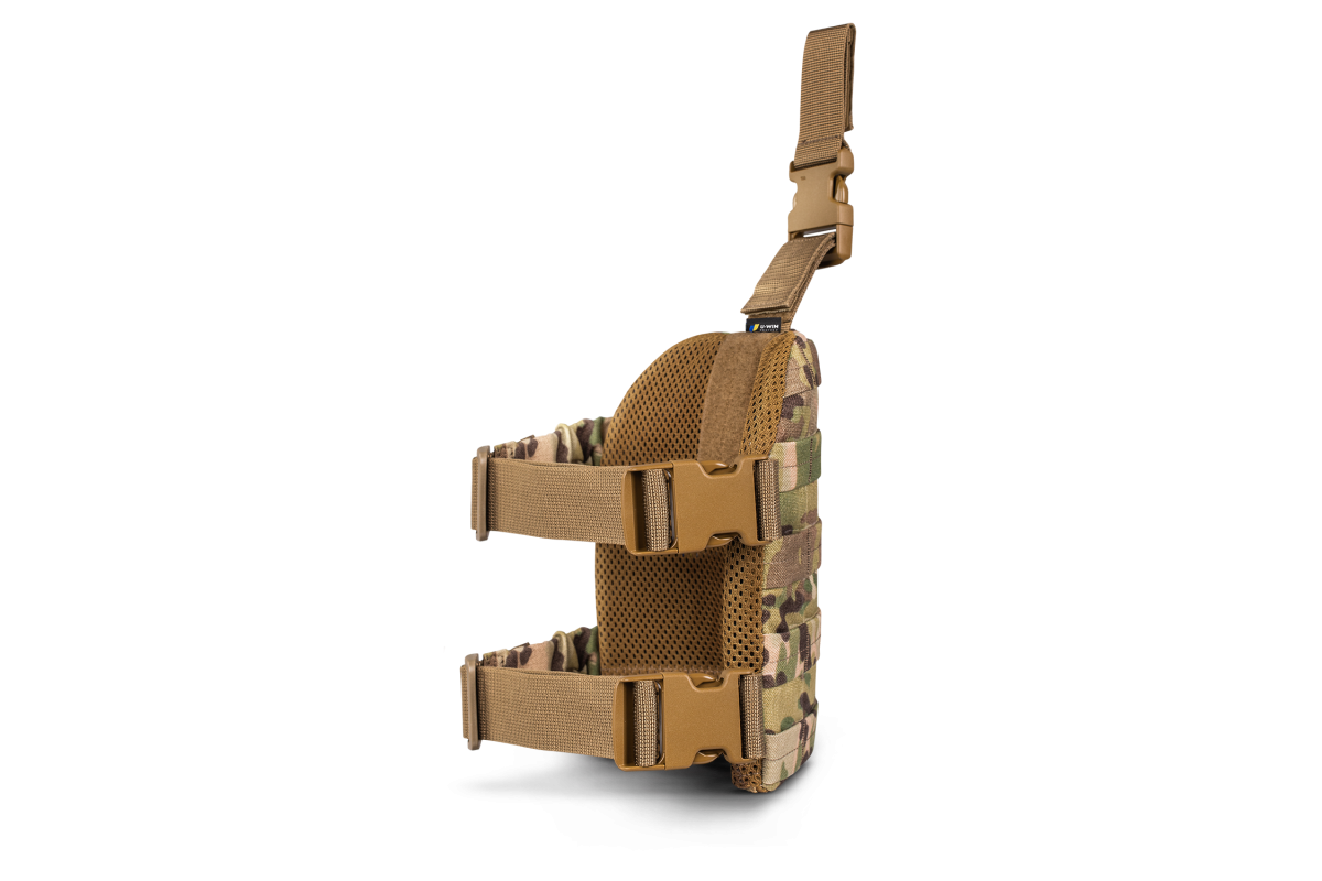 Платформа на стегно призначена для розміщення додаткового Молле-сумісного спорядження: кобура пістолета, підсумки під магазини, гранатні підсумки, аптечка тощо.Розроблена на ліву ногу.Може бути укомплектована балістичним пакетом на всю площу виробу.Кріпиться на 3 точки: до паску на систему з липучкою Велкро і фастексом і в двох точках — навколо стегна на паски з резинками і фастексами.Передбачене регулювання розміщення платформи як по висоті в широкому діапазоні, так і по об'єму стегна (від 48 до 88 см).Ззовні платформа оснащена Молле-інтерфейсом на 6 вертикальних рядів і 5 горизонтальних строп Молле.Внутрішня частина виконана зі зносостійкої тактичної сітки.Всередині є демпферний матеріал товщиною 8 мм для збільшення комфорту і зменшення заброньової травми при використанні разом з балістичним пакетом.Резинки на кріпленнях повністю закриті основним матеріалом Cordura для забезпечення тривалої експлуатації виробу в агресивних умовах.Матеріали:- Оригінальна Cordura 1000D (Broowood, США). Тканина має NIR-просочення (не світиться в приладі нічного бачення – відео з тестом, подвійне поліуретанове просочення для відштовхування води , не підтримує горіння, не вигорає на сонці, не витирається. Завдяки запатентованому волокну Invista – має підвищену міцність і зносостійкість, а також зберігає свої властивості тривалий час в екстремальних умовах експлуатації. Відео з порівнянням оригінальної Cordura з підробкою.- Армовані нитки TYTAN з 100% суцільного поліефірного шовку. Відрізняються високою міцністю на розрив і стійкістю до хімічних і механічних чинників. Відео з порівнянням ниток і швів.- Зносостійка поліамідна тактична сітка. Не пошкоджується липучкою, має високу температуру плавлення, буде служити не менше за основну тканину. Відео з порівнянням тактичної сітки і 3D сітки.- Оригінальна фурнітура 2М (Італія).- Якісні резинки найвищої міцності і зносостійкості.- Липучка Velcro Alfatex (Бельгія). Має щільний шар гачків і петель, які зберігають властивості протягом тривалої експлуатації в екстремальних умовах.- Поліамідні стропи. Мають високу міцність, зносостійкість і високу температуру плавлення.Розмір платформи без кріплень: 24х23х2 см Вага: 266 г.