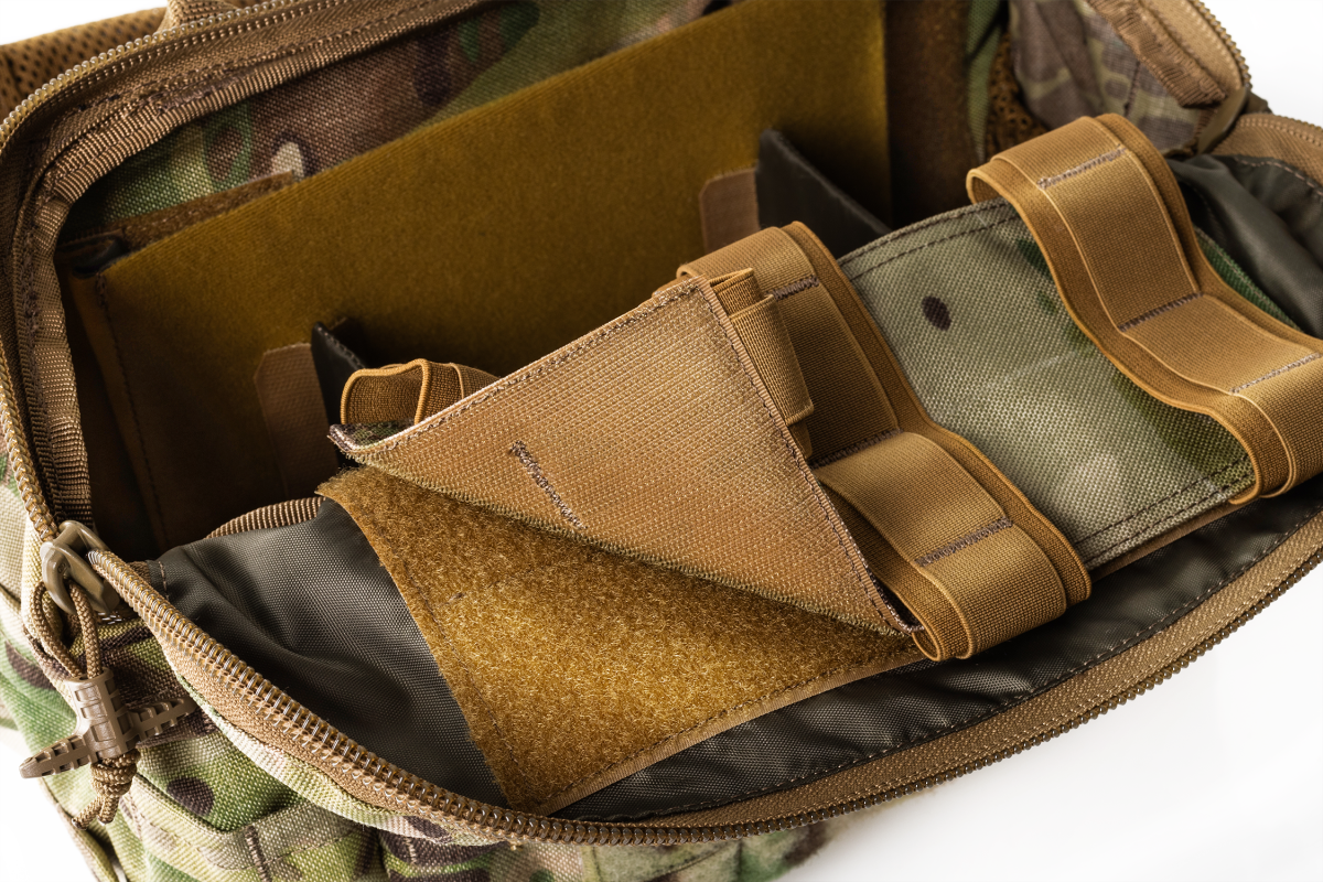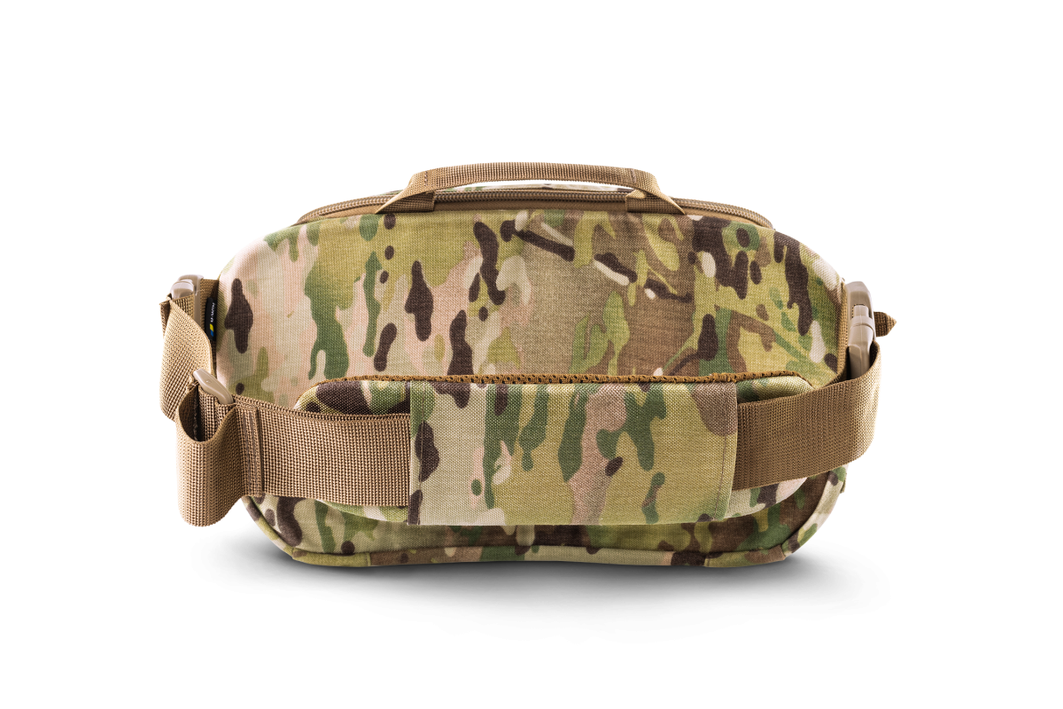 Сумка розроблена під потреби стрільців-санітарів і бойових медиків.Має зручну анатомічну форму та широкий функціонал:- Може переноситися в руці, на поясі, через плече або інтегруватися спереду або ззаду до РПС за допомогою адаптерів, які можна замовити окремо.- Пасок оснащений м'якою подушкою, довжина паска легко регулюється, пасок легко від'єднується за допомогою фастексів з двох сторін.- Ззовні оснащена суцільним MOLLE-інтерфейсом для розміщення підсумків під турнікети або іншого MOLLE-сумісного спорядження- Має об'ємну кишеню спереду з велкро-панеллю для патчів та ідентифікаторів - Має кишеню під медичні рукавички з клапаном для легкого доступу у кришці сумки.- Кришка сумки з внутрішньої сторони оснащена з'ємним органайзером на липучці для бандажів і інших матеріалів.- Всередині сумка має з'ємний регульований відсік під ампульницю, а також дві з'ємні поперечні перегородки на липучках для формування ергономічного внутрішнього простору сумки.- В обох внутрішніх кутах сумки передбачені кишені з тактичної сітки із затяжками для ефективного використання об'єму сумки.- Сумка оснащена двома люверсними отворами, які закриті стропами MOLLE знизу, щоб бруд не попадав всередину.- Задня стінка сумки обладнана пластиком з демпферним матеріалом для утримання форми і додаткового комфорту при носінні.Матеріали:- Оригінальна Cordura 1000D (Brookwood,